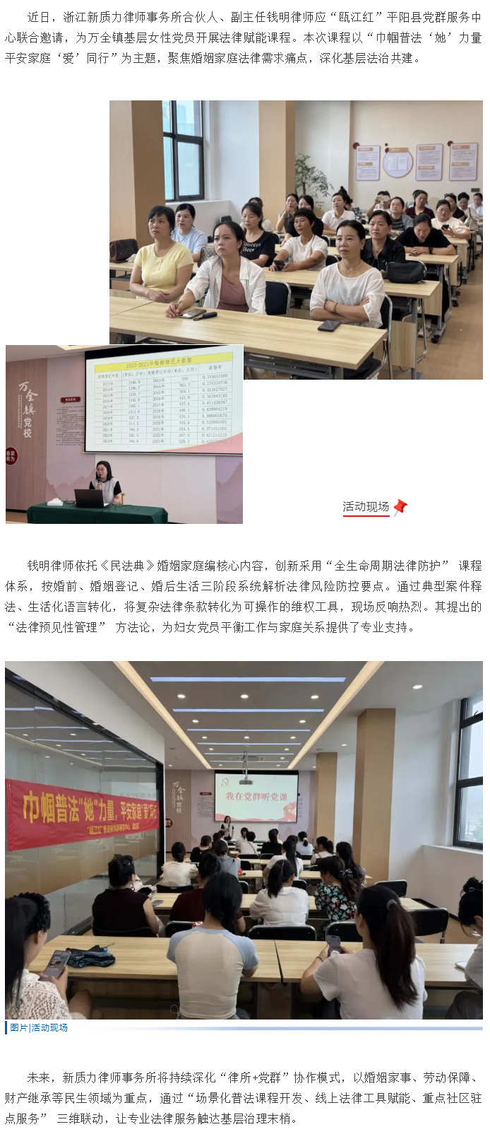 新质力所钱明律师受邀为万全镇基层女性党员开展法律赋能课程
