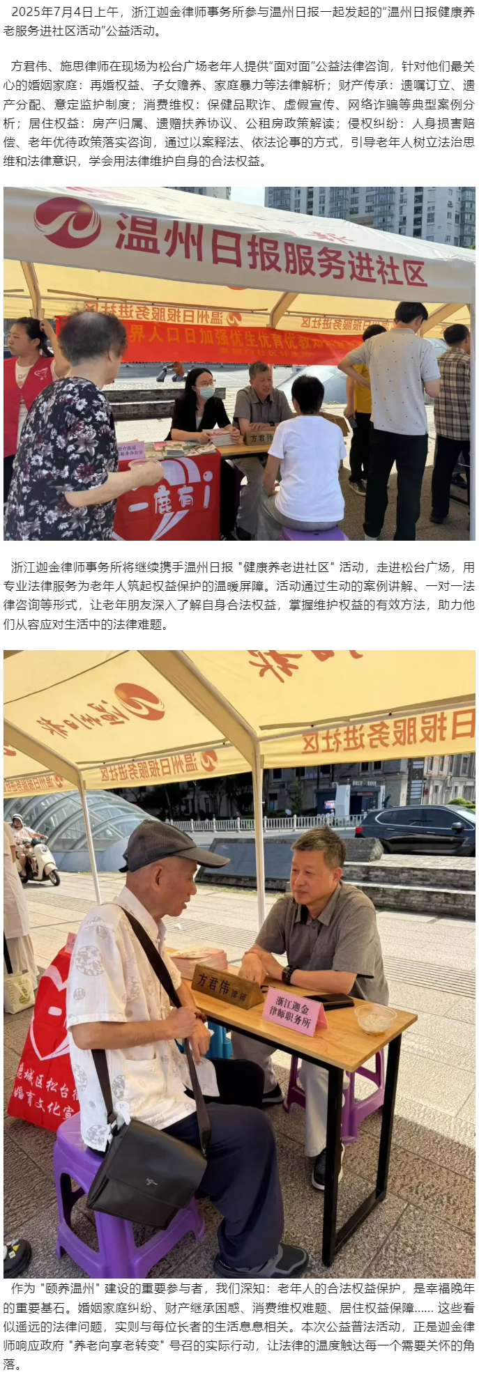 迦金律所方君伟、施思律师在松台广场提供法律咨询