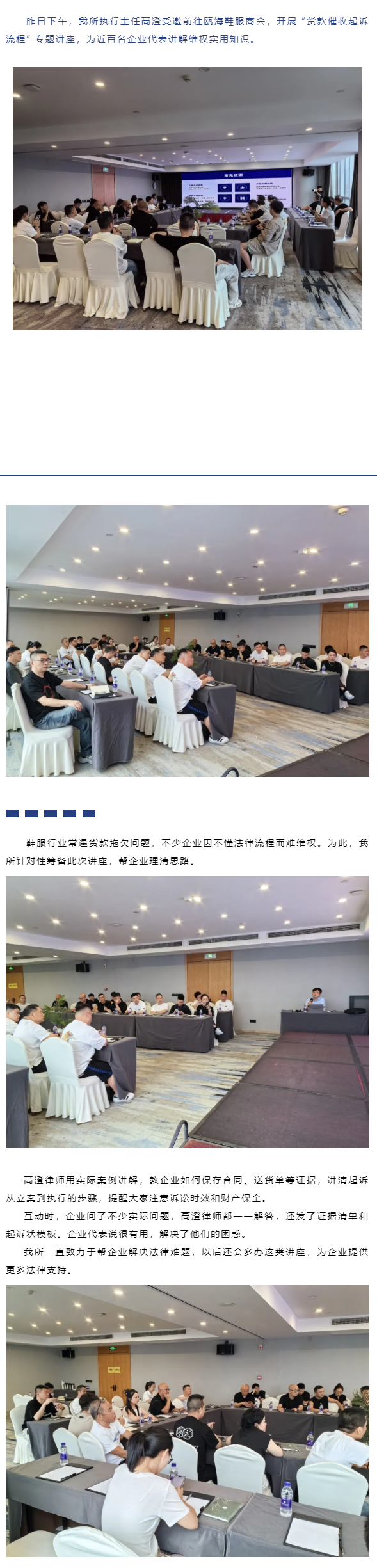 摩尚所律师受邀为瓯海鞋服商会开展专题普法讲座