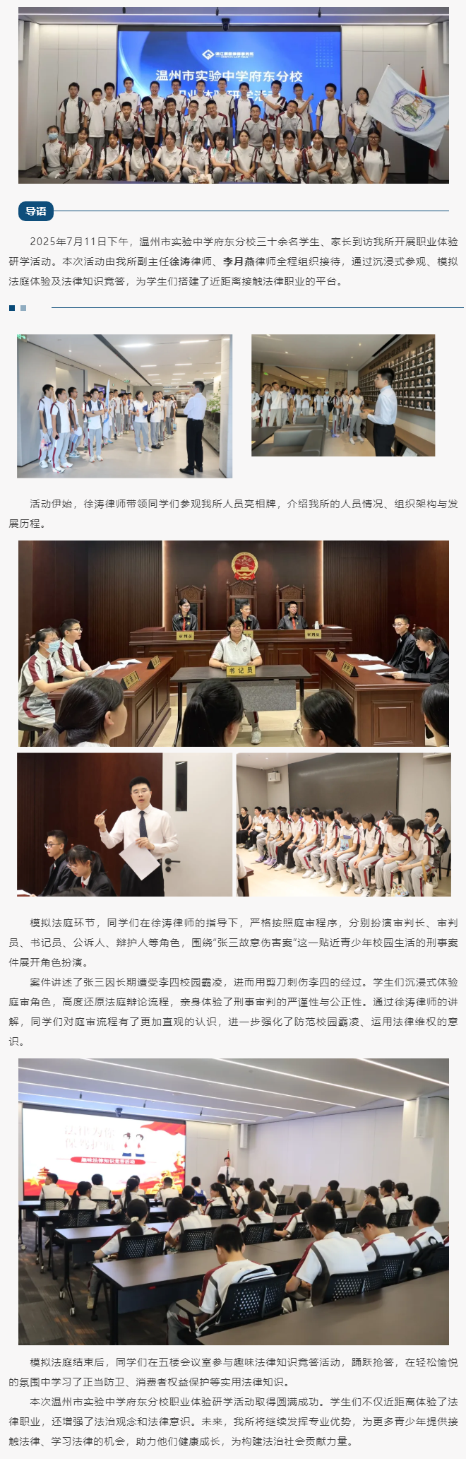 温州市实验中学府东分校职业体验研学活动于震瓯所成功举办