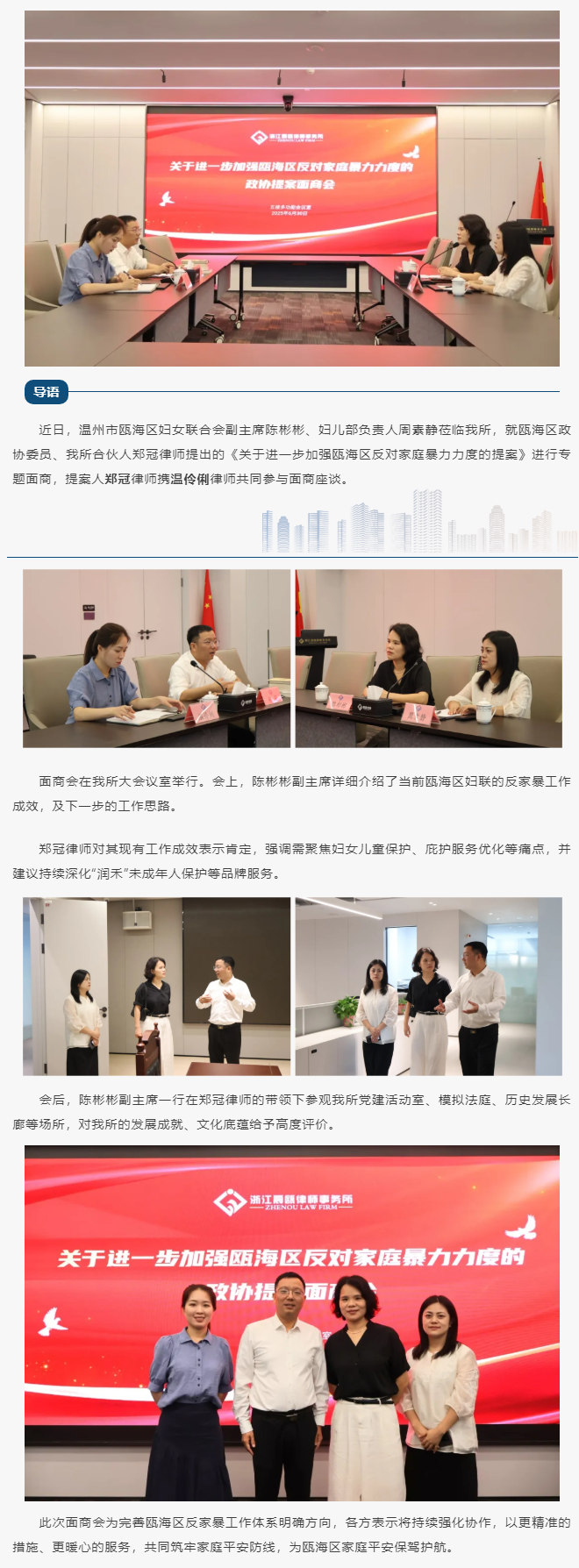 瓯海区妇女联合会副主席一行莅临震瓯所面商政协提案