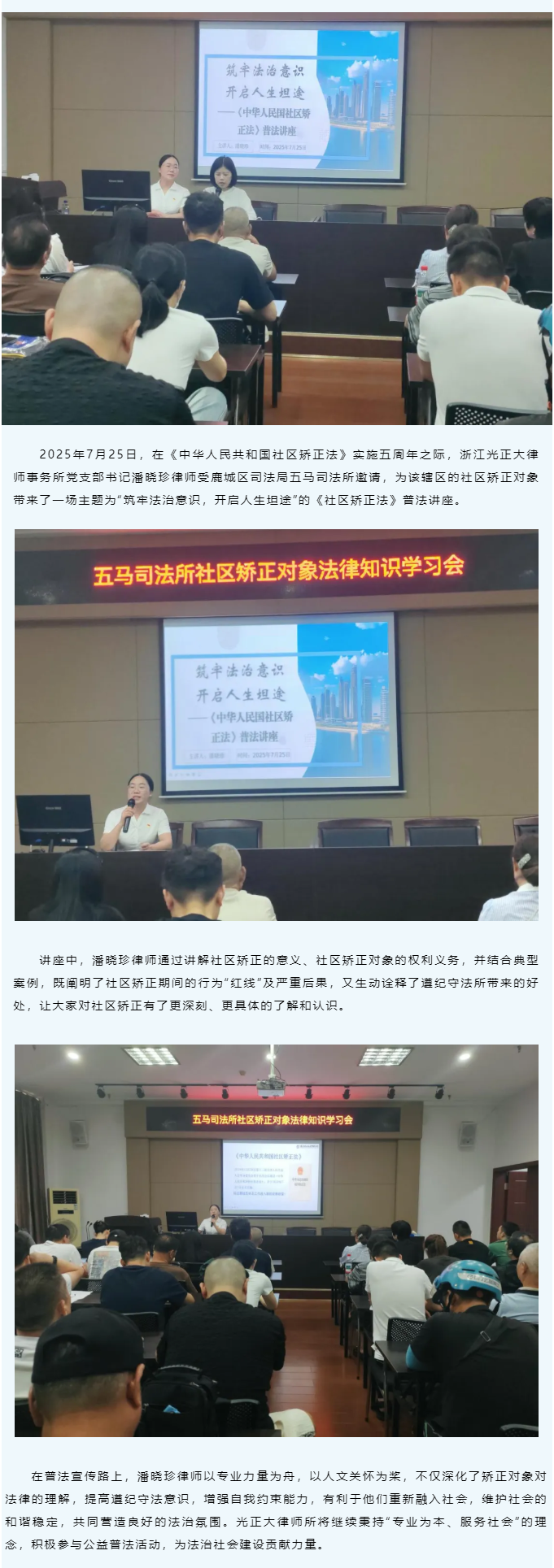“筑牢法治意识,开启人生坦途”光正大律师所潘晓珍律师受邀开展《中华人民共和国社区矫正法》普法讲座