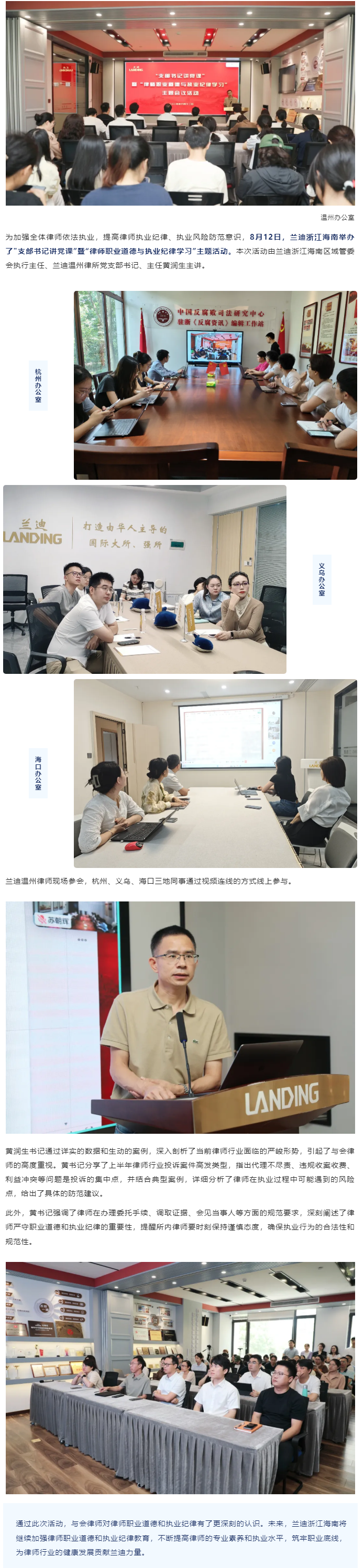 兰迪温州所举办“支部书记讲党课”暨“律师职业道德与执业纪律学习”主题活动