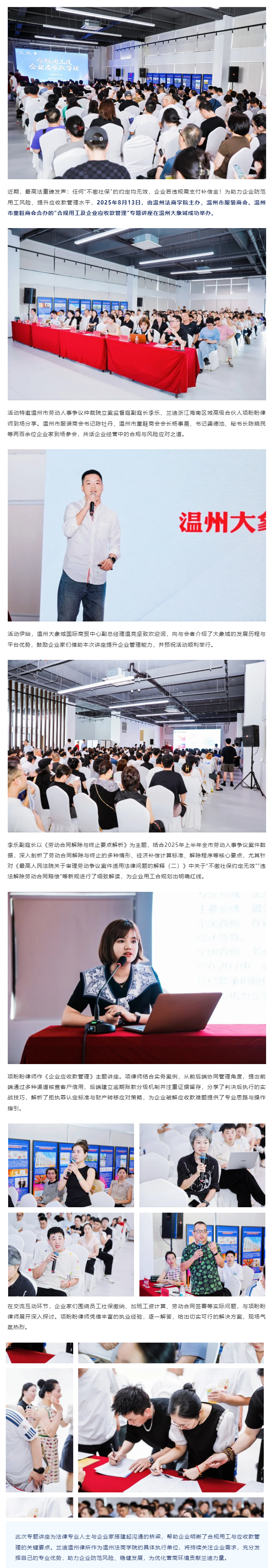 兰迪温州律所助力“合规用工及企业应收款管理”专题讲座成功举办