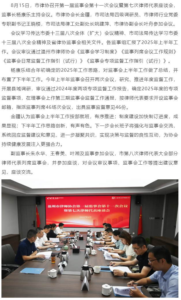 市律协召开第一届监事会第十一次会议暨第七次律师代表座谈会
