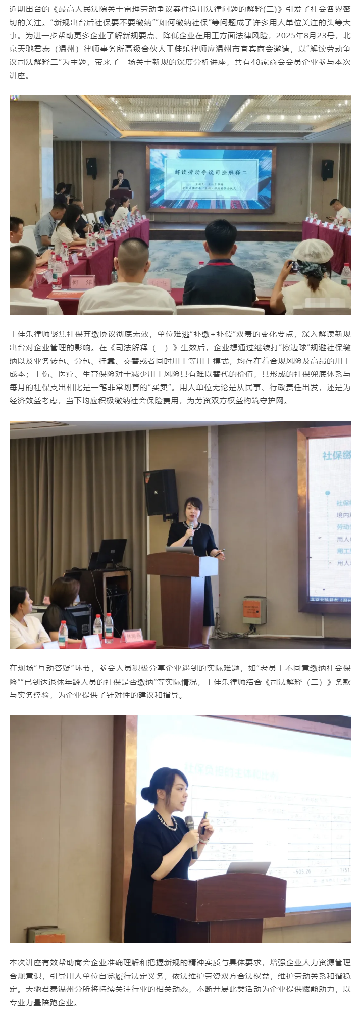 天驰君泰温州所王佳乐律师应邀开展劳动争议司法解释(二)讲座