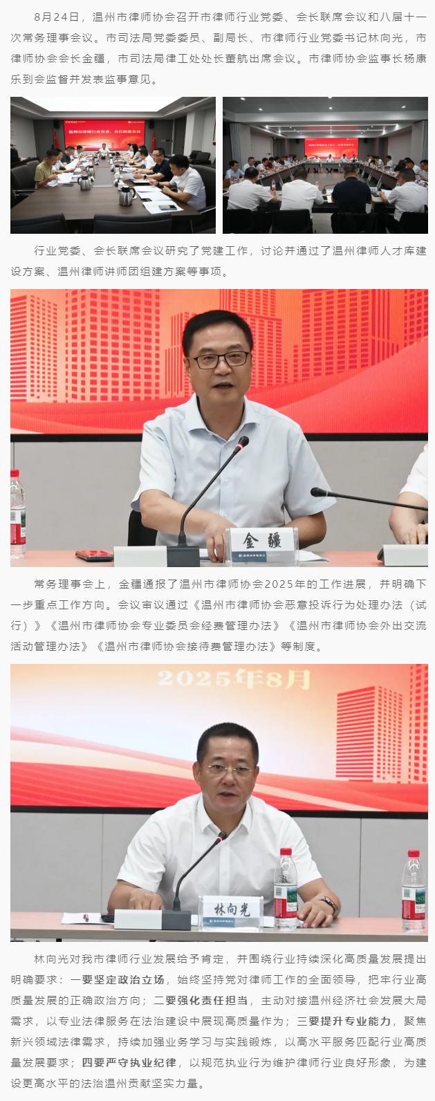 市律协召开市律师行业党委、会长联席会议和八届十一次常务理事会议