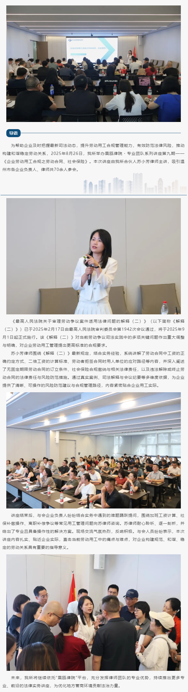群企汇聚 新规解读:企业劳动用工合规 | 震瓯律院·专业团队系列讲座第九期成功举行