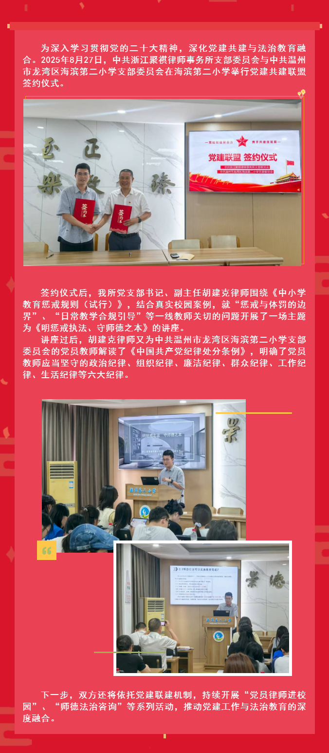 党建共建——“党建红引领,法治蓝护航”聚祺所开展法治进校园主题党建活动