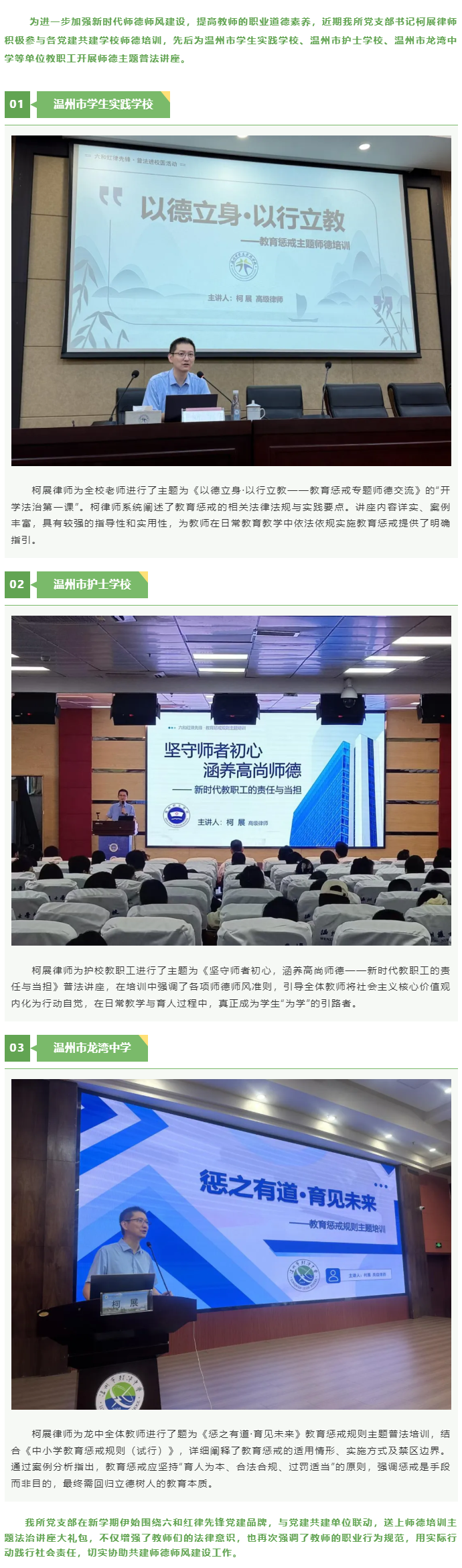六和温州所柯展律师为党建共建学校积极开展新学期师德培训法治讲座