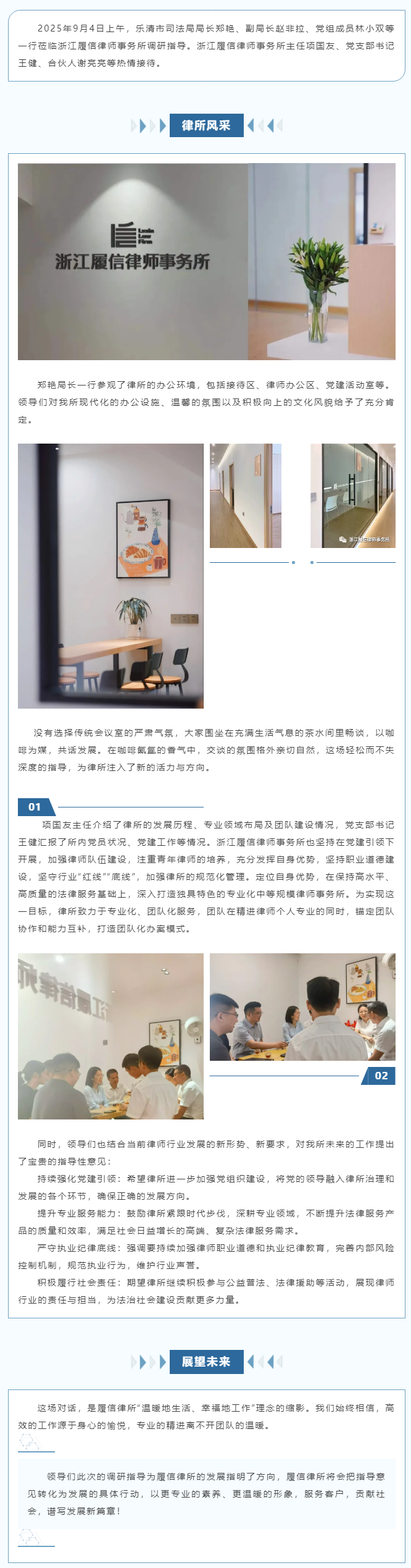 乐清市司法局局长郑艳一行莅临履信所指导工作