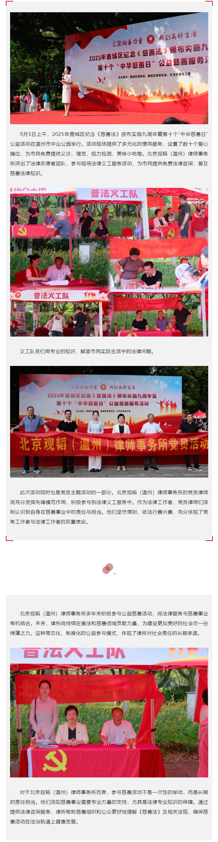 北京观韬(温州)律师事务所助力“中华慈善日” 法律公益服务进公园暨主题党日活动