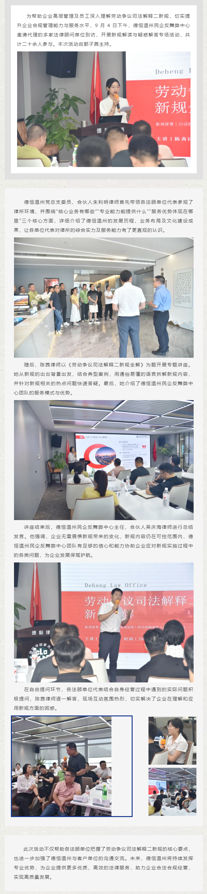 德恒温州所开展劳动争议司法解释二新规解读会,助力企业精准把握政策导向