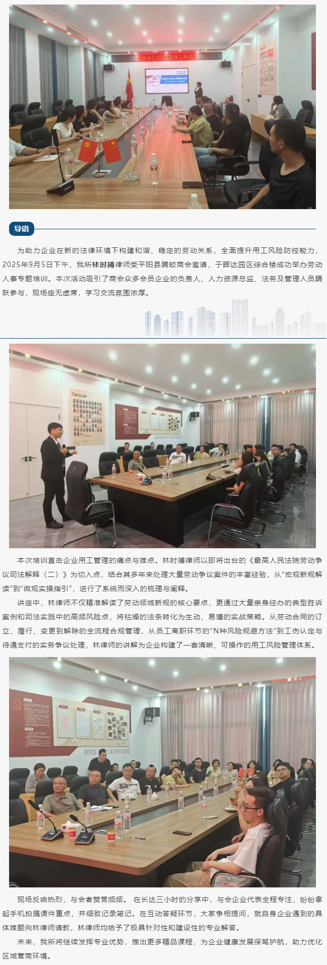 震瓯所林时搏律师应邀为平阳县腾蛟商会授课深度解析企业用工新规赋能合规治理