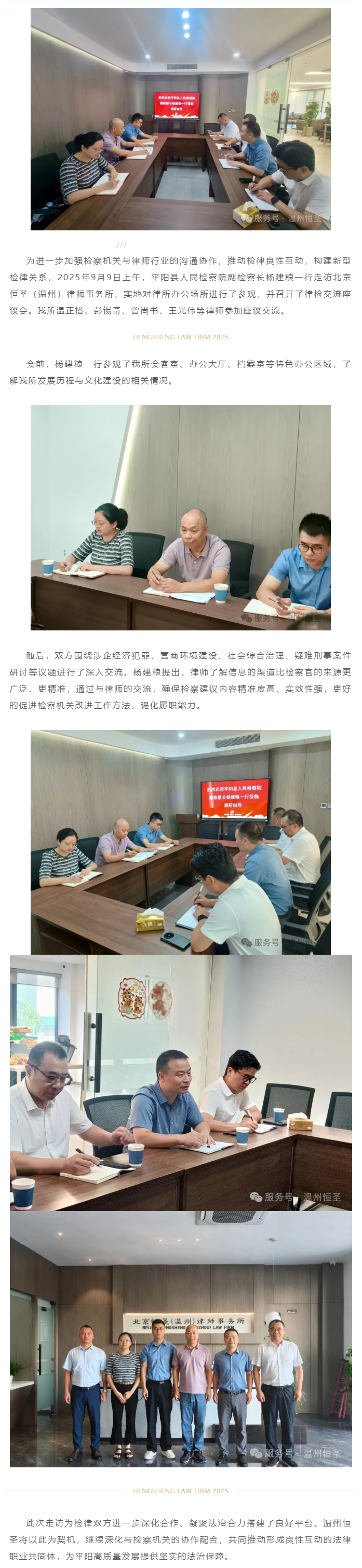 平阳县检察院杨建粮副检察长一行莅临恒圣温州所开展调研指导