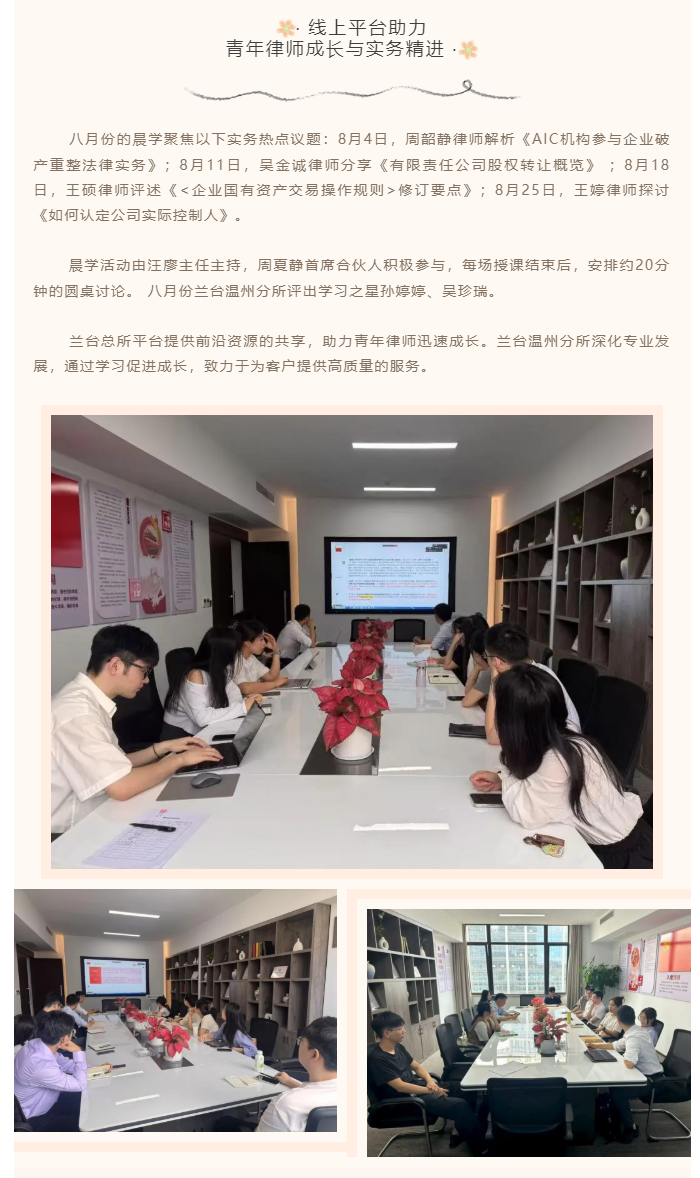 兰台温州分所晨学活动:线上平台助力青年律师成长与实务精进