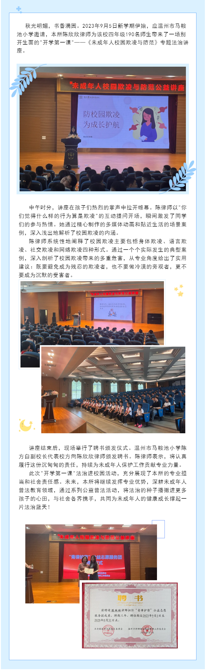 以法之名——守护“少年的你”,聚祺所开展校园普法活动