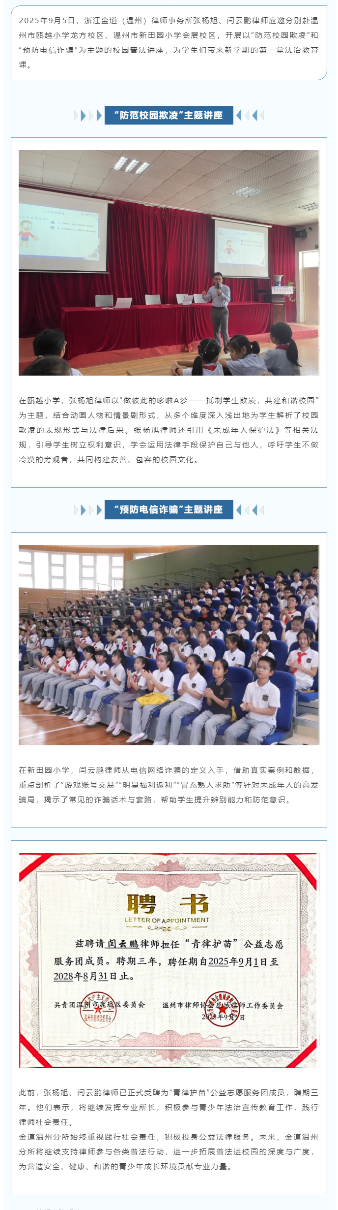 金道温州所律师受邀开展校园普法讲座