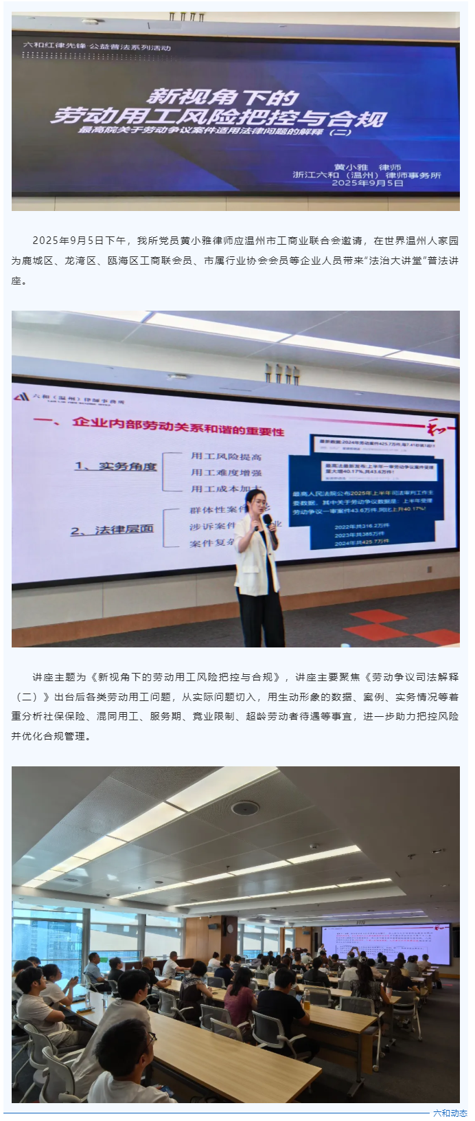 六和温州所党员黄小雅律师受邀为“法治大讲堂”进行公益讲座
