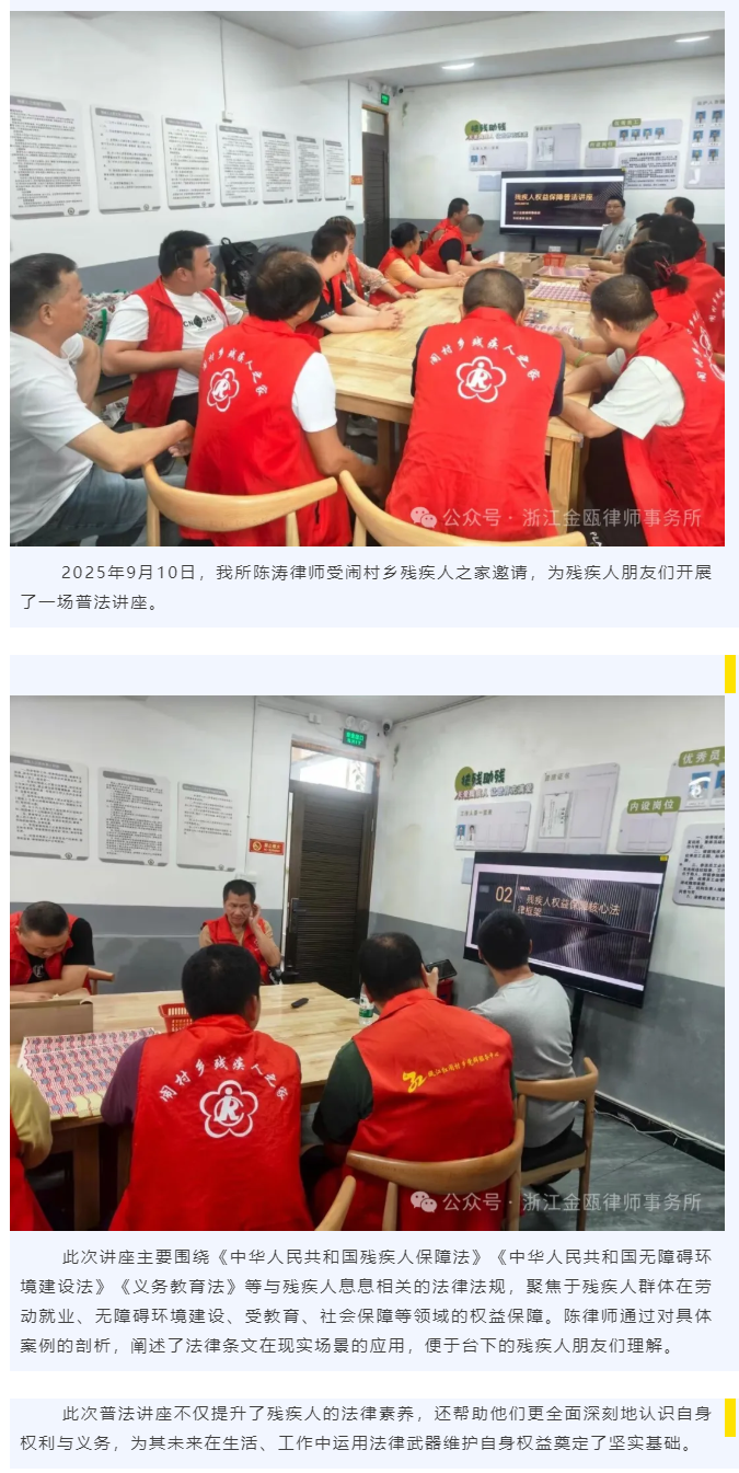 金瓯所陈涛律师受邀为闹村乡残疾人开展普法讲座