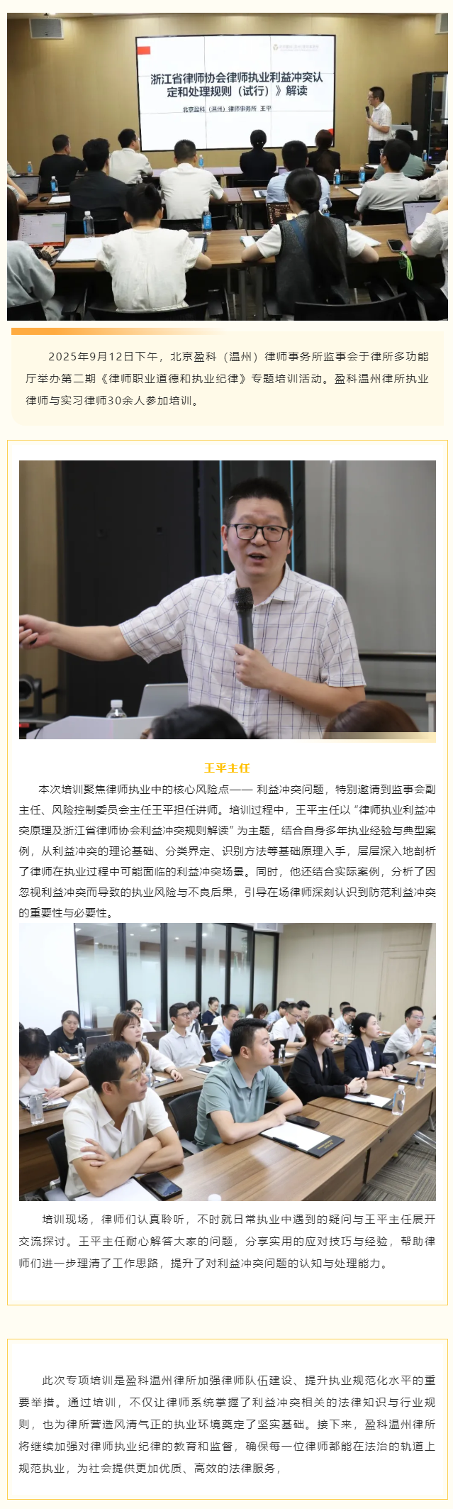 盈科温州律所举办2025年度律师职业道德与执业纪律专项培训(第二期)