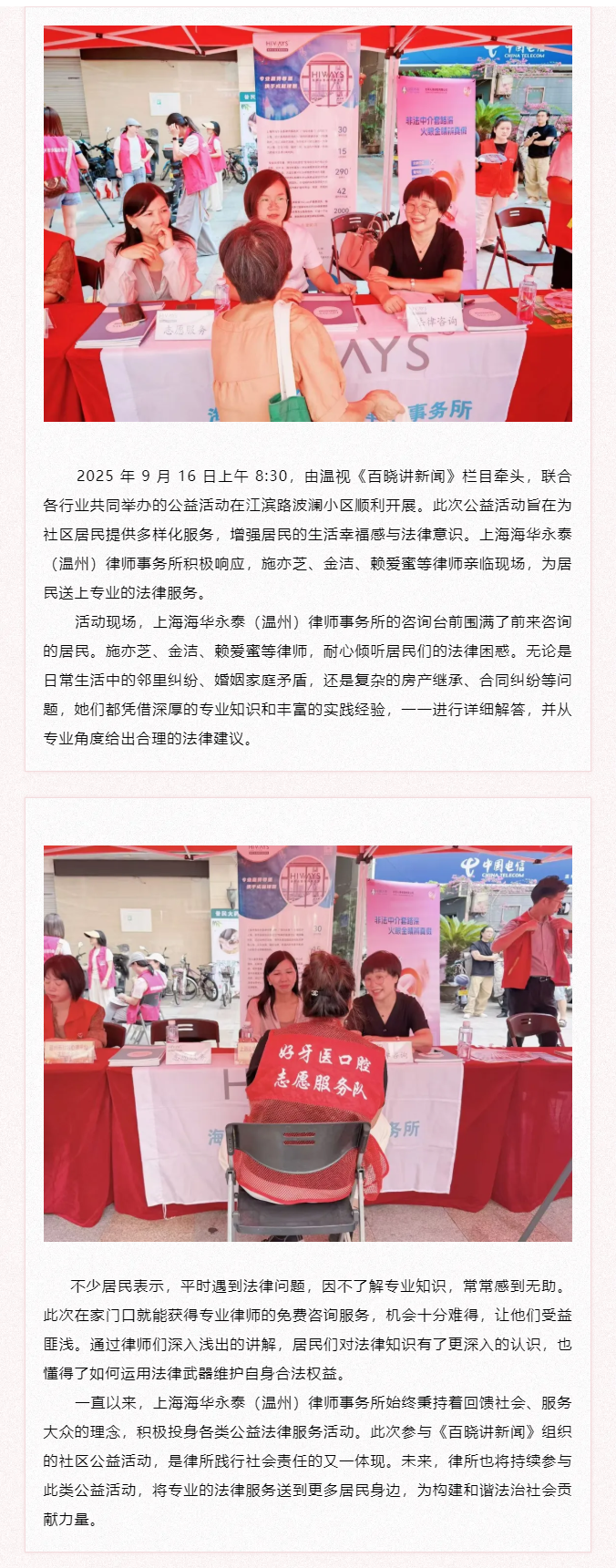 海华永泰温州所律师以公益法律服务赋能社区,提升居民幸福感