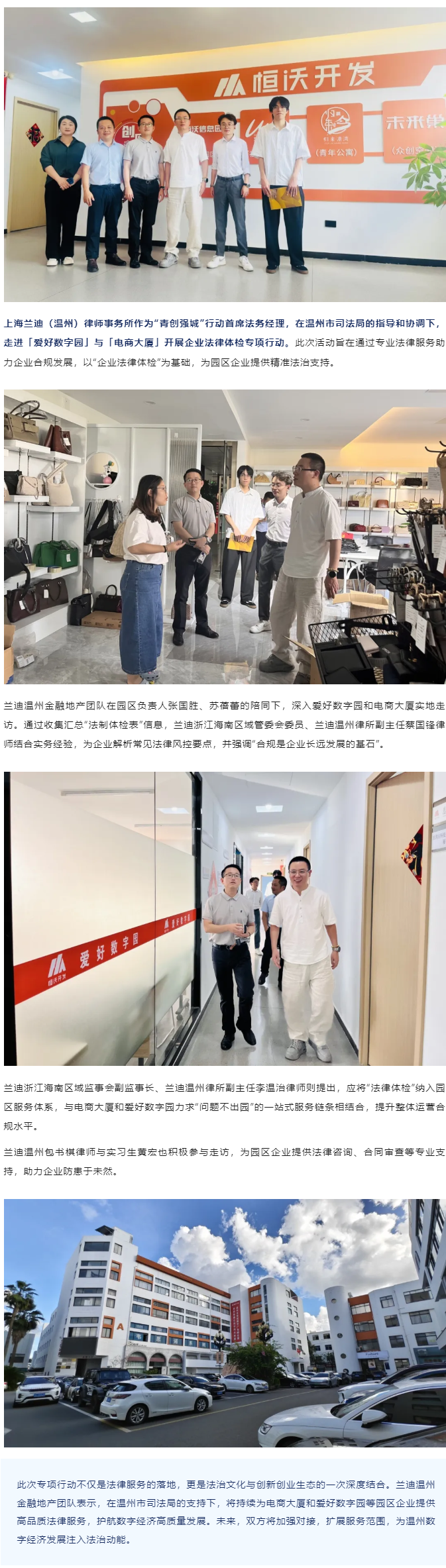 兰迪温州所走进「爱好数字园」与「电商大厦」开展企业走访和法律体检专项行动