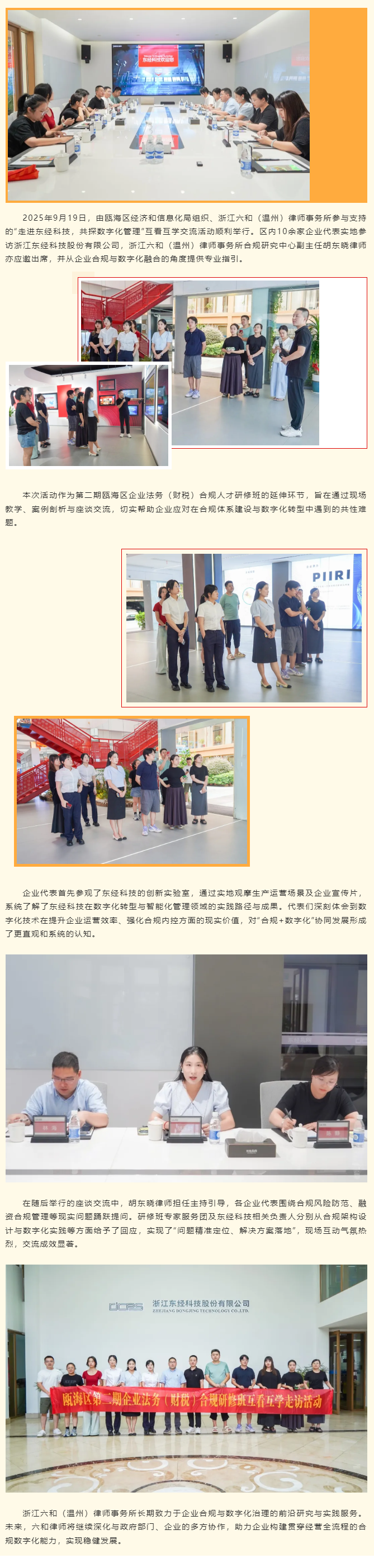 聚焦“合规+数字化”——瓯海企业走进东经科技,六和温州律师助力解锁实战经验