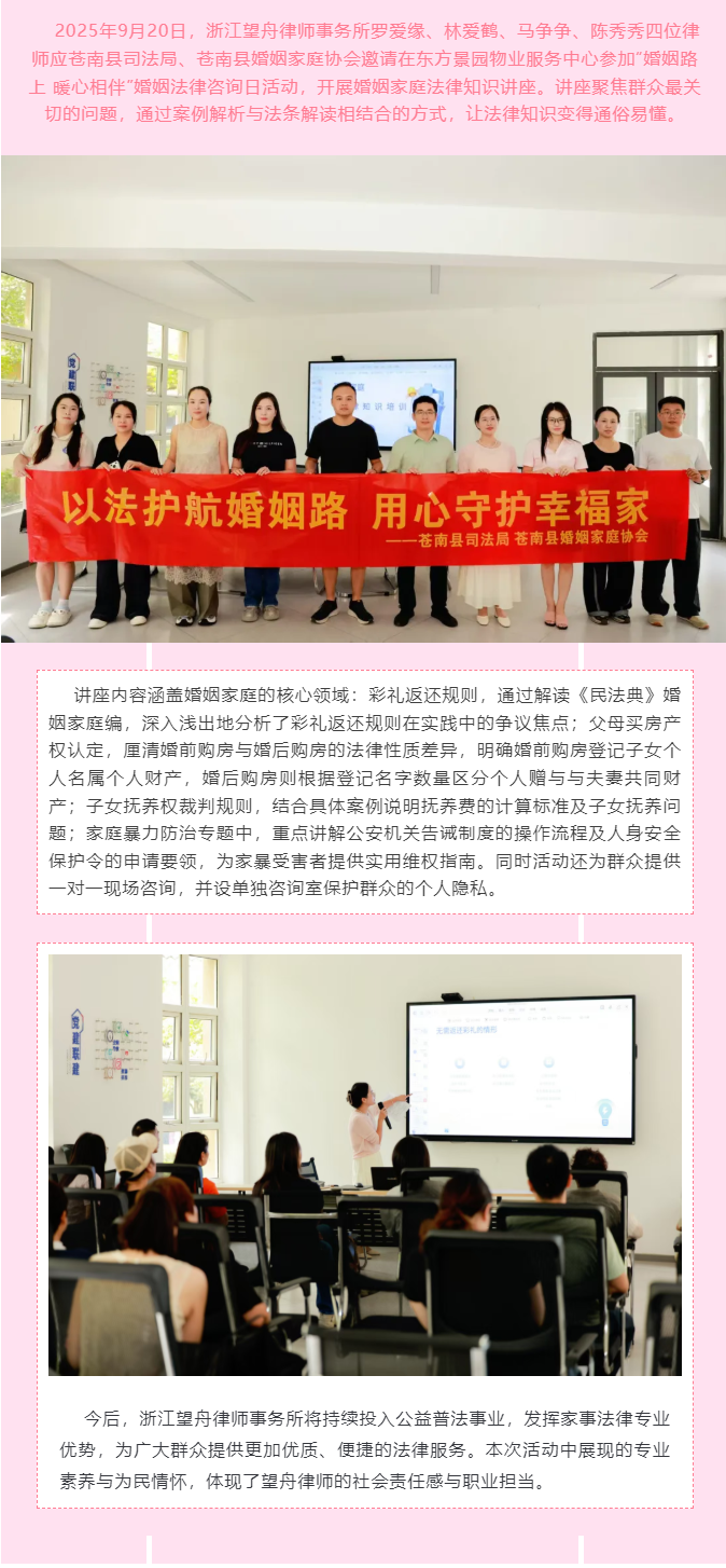 望舟所律师参与"婚姻路上 暖心相伴"法律咨询日活动