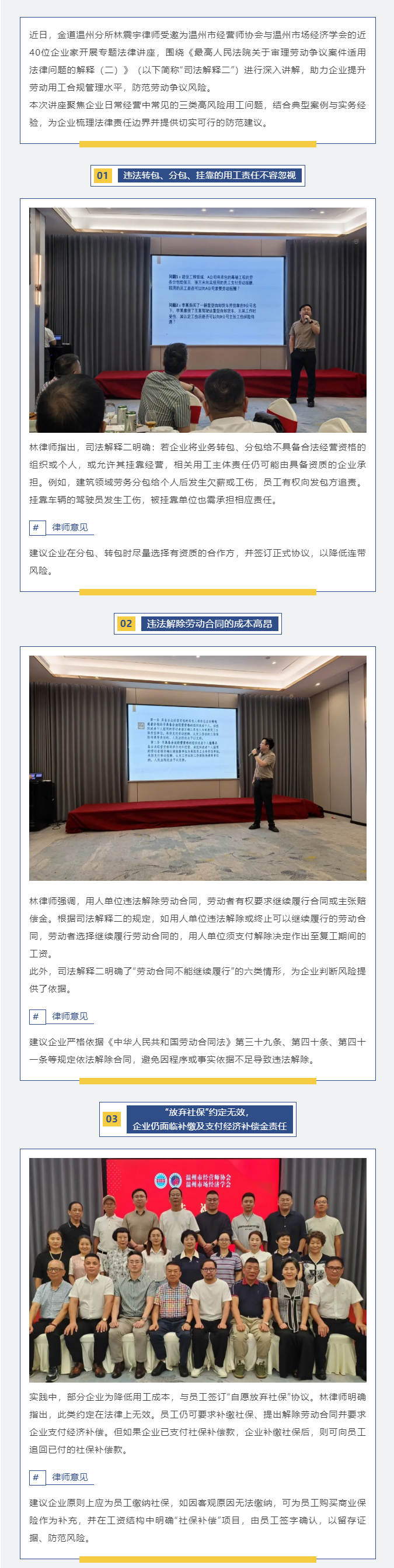 法律风险早防范,合规用工稳发展 —— 金道温州所林震宇律师为温州企业家解读劳动争议司法解释(二)