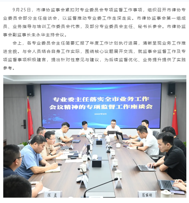 市律协监事会召开专业委员会主任座谈会——深化专项监督,促业务落地
