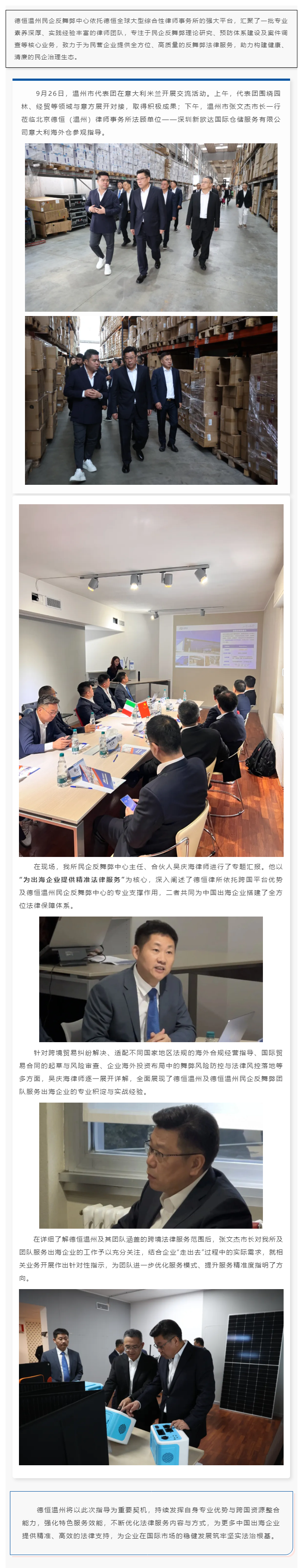 聚焦出海企业需求,德恒温州所吴庆海律师向张文杰市长一行作法律服务专题汇报