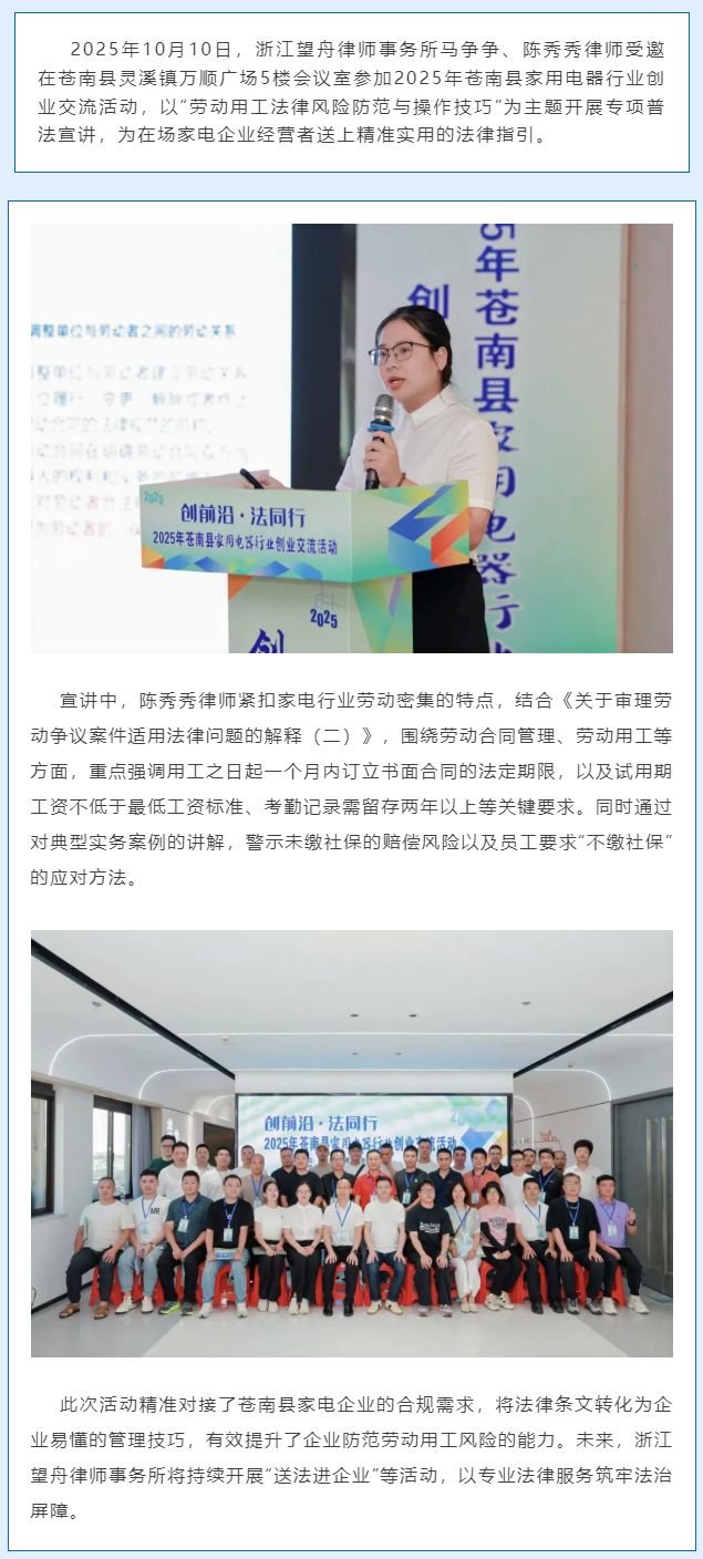 望舟所律师助力苍南县家用电器行业创业交流活动