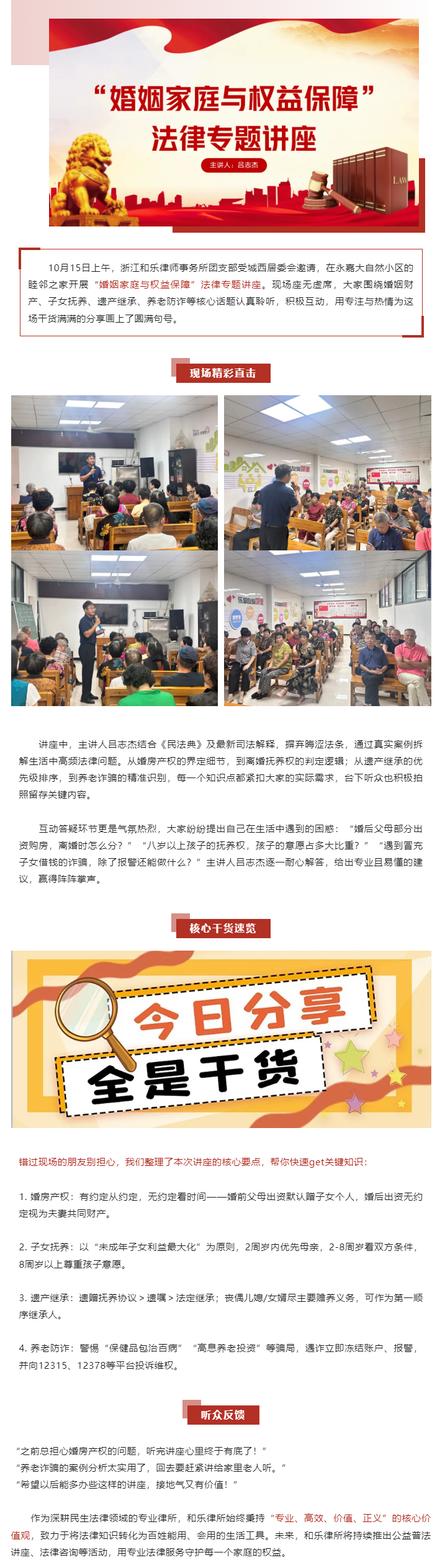 和乐律所吕志杰受城西社区居委会邀请开展法律讲座