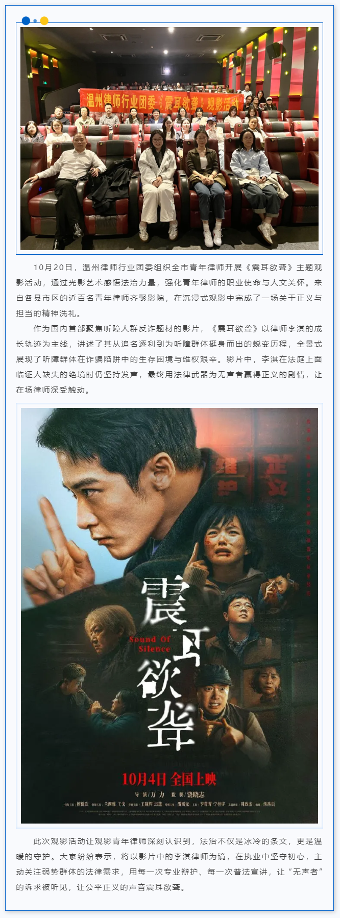 光影照初心 法治护无声 | 温州律师行业团委组织《震耳欲聋》观影活动