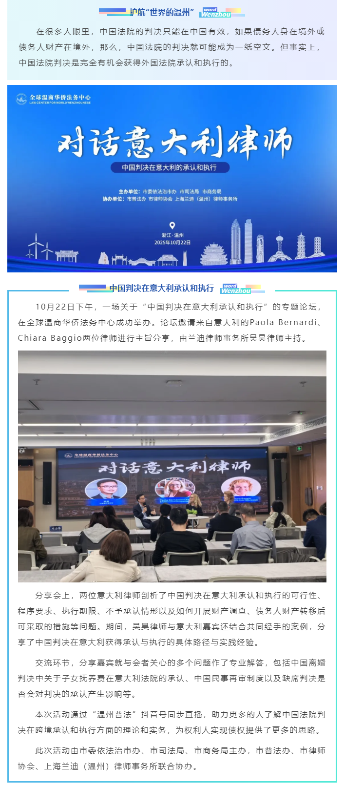 护航“世界的温州”——中意律师对话“中国判决在意大利的承认与执行”