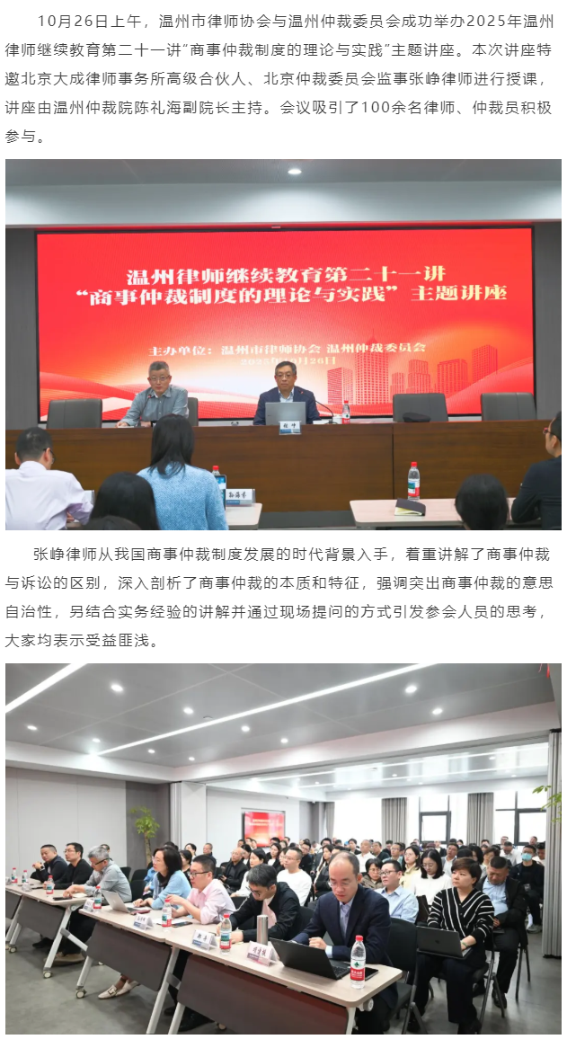 温州律师继续教育第二十一讲“商事仲裁制度的理论与实践”主题讲座成功举办