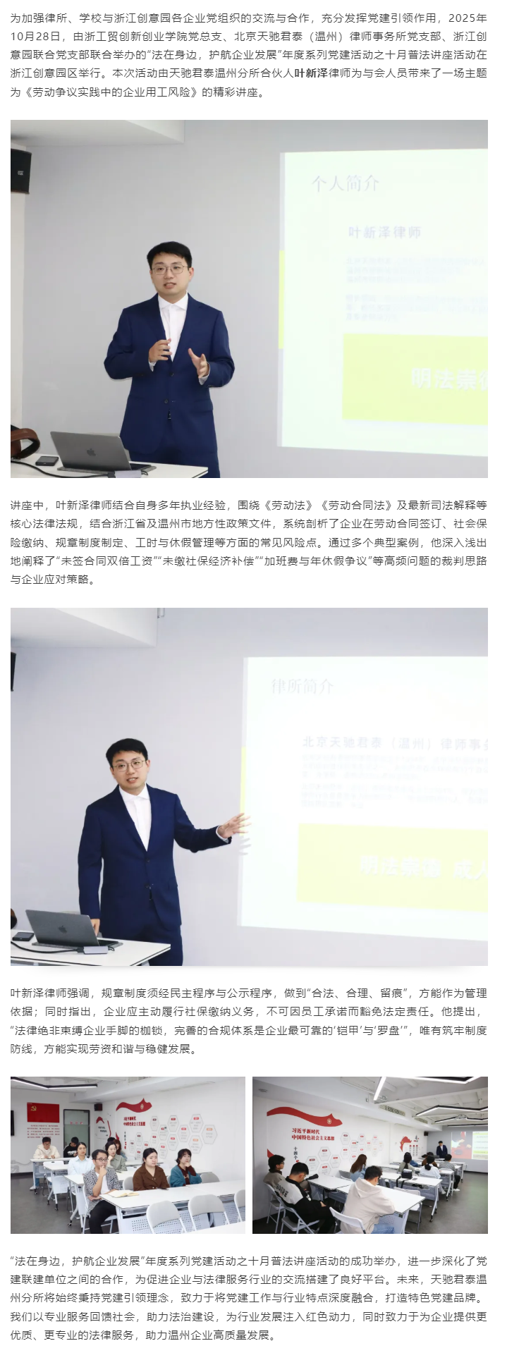 千所万律公益行 | 天驰君泰温州分所合伙人叶新泽开展“法在身边,护航企业发展”年度系列党建活动