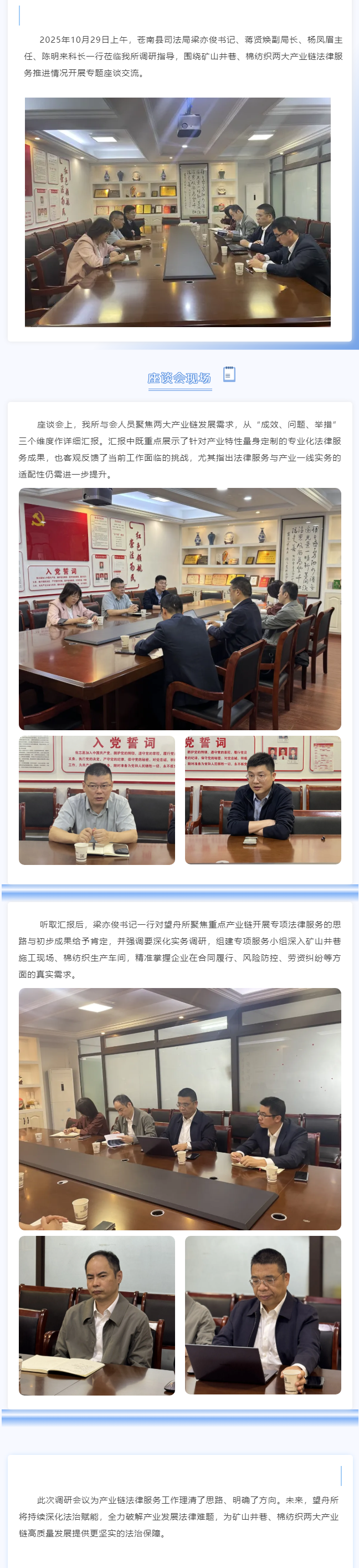 苍南县司法局梁亦俊书记一行莅临望舟所调研指导产业链法律服务工作