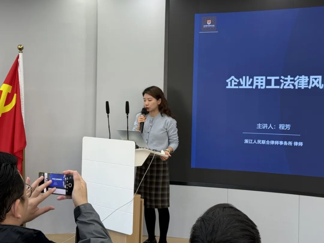 2025年11月20日下午,浙江人民联合律师事务所党支部与温州市场经济学会党支部携手,在本所成功开展了党建共建活动。此次活动聚焦企业发展的关键痛点——劳动用工风险防范,特别邀请本所程芳律师担任2025年第三期“红领经”公益讲坛的主讲人,为在座的企业家们带来了一场干货满满、实用性极强的法律盛宴。