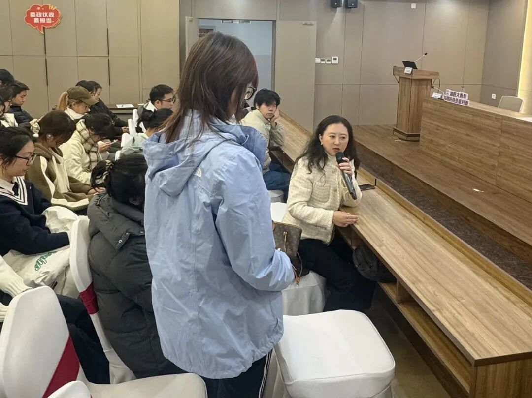 针对提案撰写,王春美律师结合专业框架拆解全流程:选题需紧扣中心工作、聚焦民生热点、结合专业优势;调研要运用文献研究、实地考察等方法;撰写提案需遵循“结构完整、数据支撑充分、建议具体可行”的规范,明确提出问题、分析问题与解决问题,同时介绍了提案提交、审查及成果转化流程,让同学们对提案工作有了全面认识。