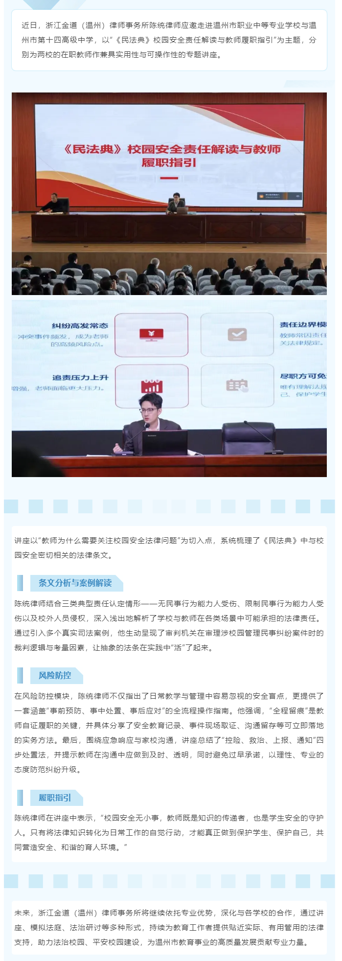 千所万律公益行丨金道温州所律师受邀为温职专与温州十四开展专题讲座