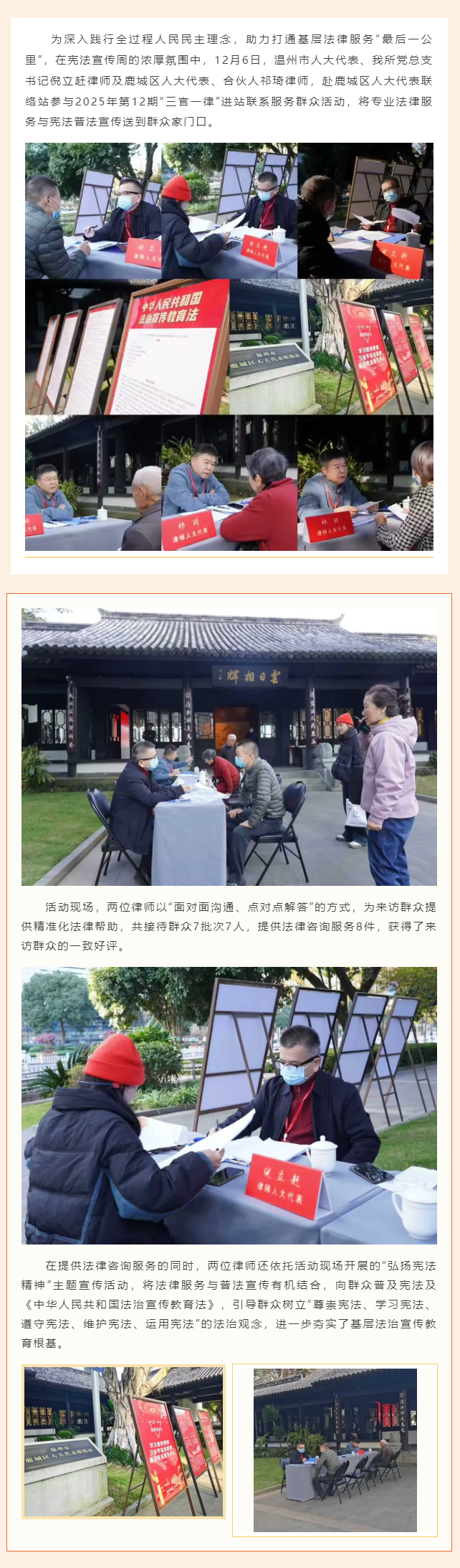 德恒温州所人大代表倪立赶律师、祁琦律师参加“三官一律”活动,送法上门弘扬宪法精神