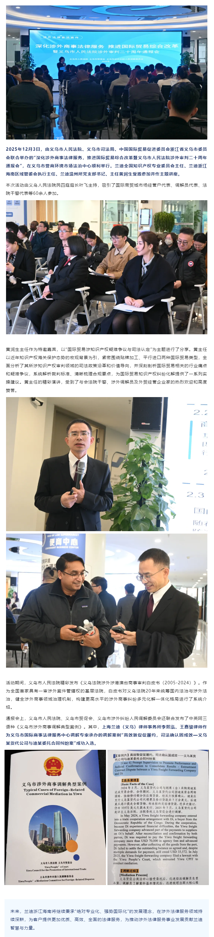 兰迪温州所黄润生律师受邀参加义乌市“深化涉外商事法律服务,推进国际贸易综合改革”活动并作主题讲座
