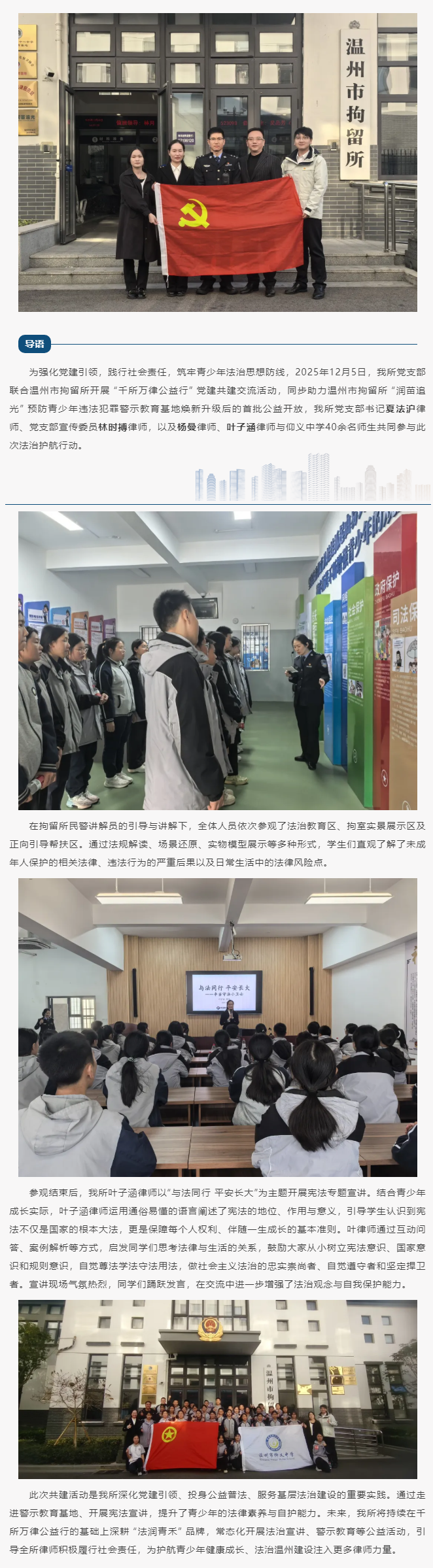 千所万律公益行|震瓯所党支部联合温州市拘留所开展青少年法治教育和宪法宣讲活动