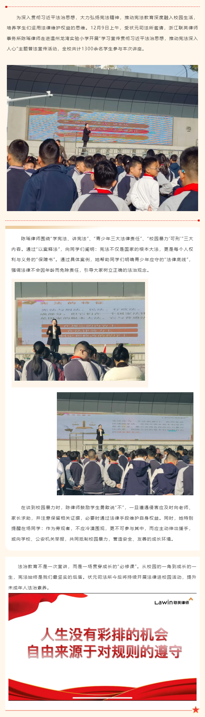 法护新苗 宪法入校园|联英所陈瑶律师走进温州龙湾实验小学开展主题普法宣传活动