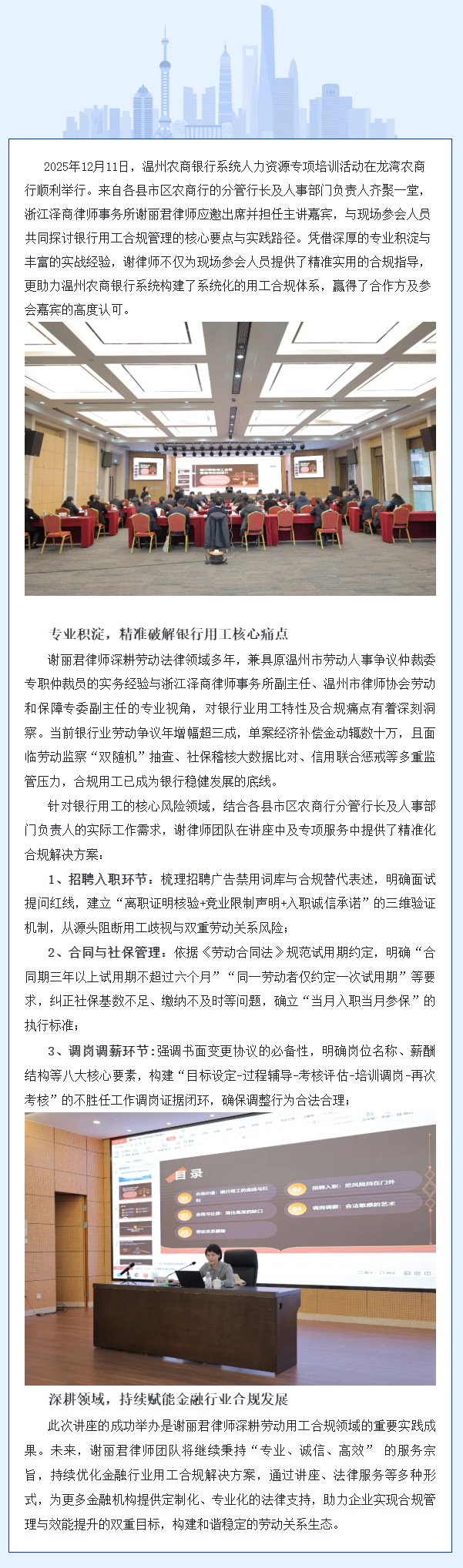 泽商所谢丽君律师助力温州农商银行系统规范用工管理