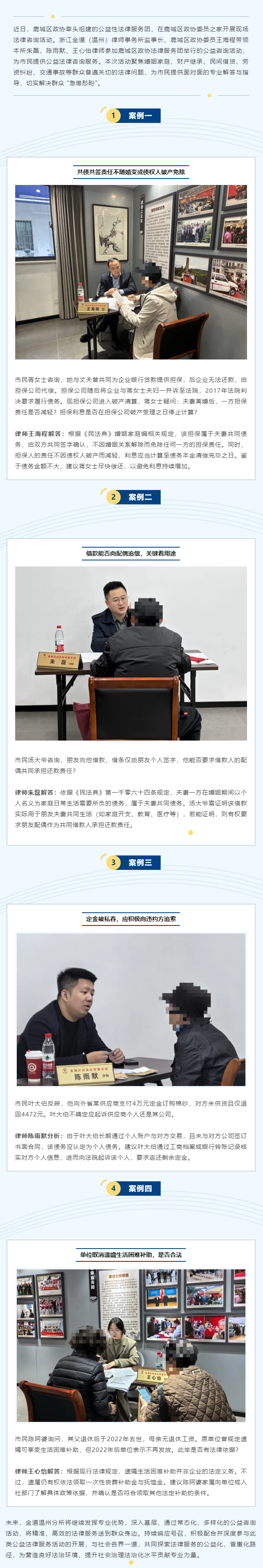 金道温州所律师参加鹿城区政协法律服务团举行的公益咨询活动,开展法律咨询服务