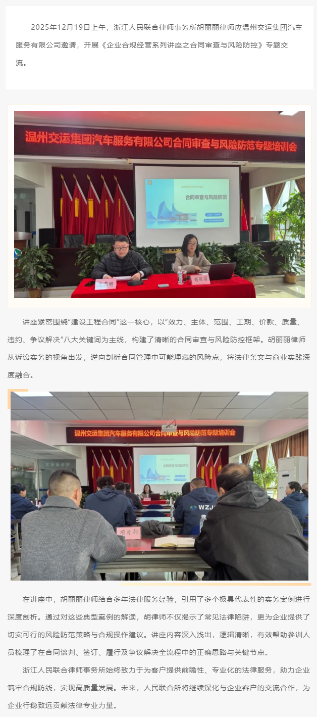人民联合所胡丽丽律师开展企业合规专题讲座