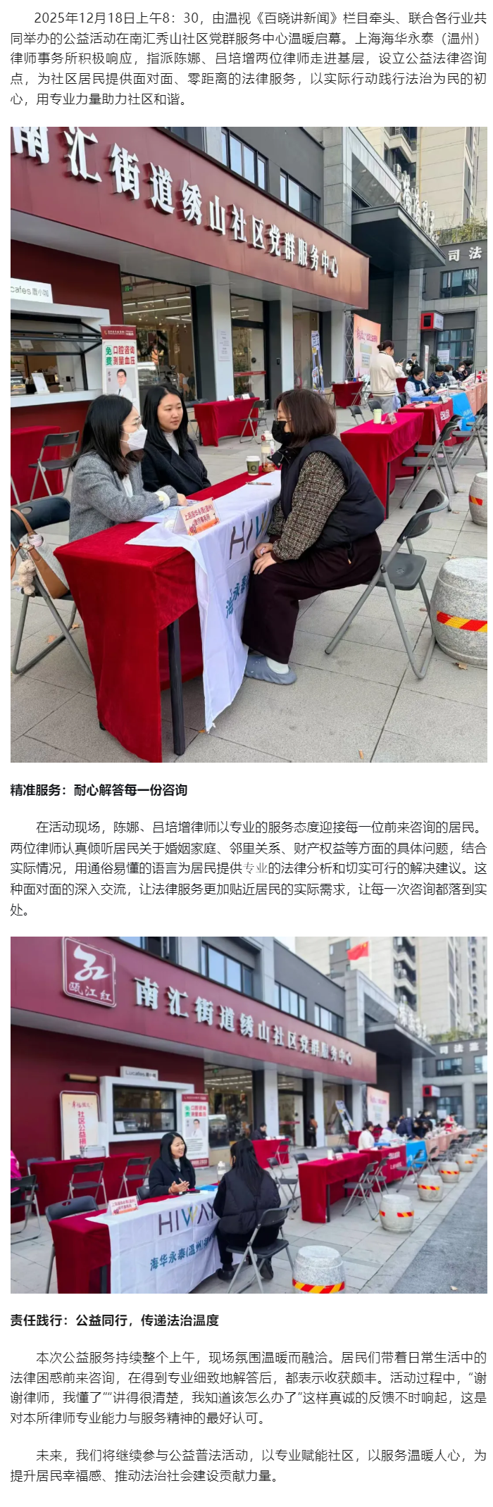 海华永泰温州所律师以公益法律服务赋能社区,助力基层法治建设